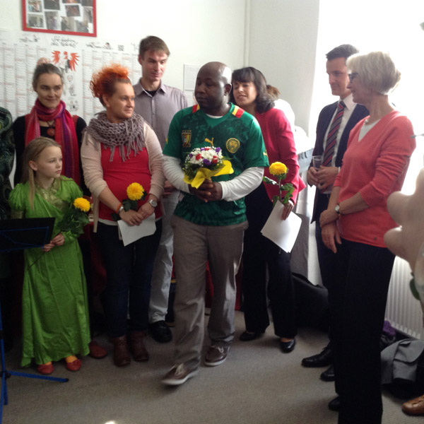 Erste Dankesworte sprach der Vorsitzende des Aufsichtsrats Soziale Stadt Potsdam aus. Daniel Beermann lobte die Fachlichkeit und hohe Qualität der Arbeit in der Frauenflüchtlingseinrichtung. So beschrieb er Fachkräfte, Praktikanten, MAE-Kräfte*, Ehrenamtler und Nachbarn als einen „großen Verbund, als aktive Familie, die sich darum kümmert, dass die Flüchtlinge willkommen sind und Integration stattfindet“. Ganz besonderen Dank richtete der Sozialmanager an Frau Kindelberger. Mit ihrem Engagement habe sie die Einrichtung stark geprägt. Der Jahrestag sei auch ein Tag der Wendemarke, da sich die Politikerin und Wissenschaftlerin ab 2015 ihrer Doktorarbeit widmen wolle. Ein personeller Generationenwechsel stehe bevor.