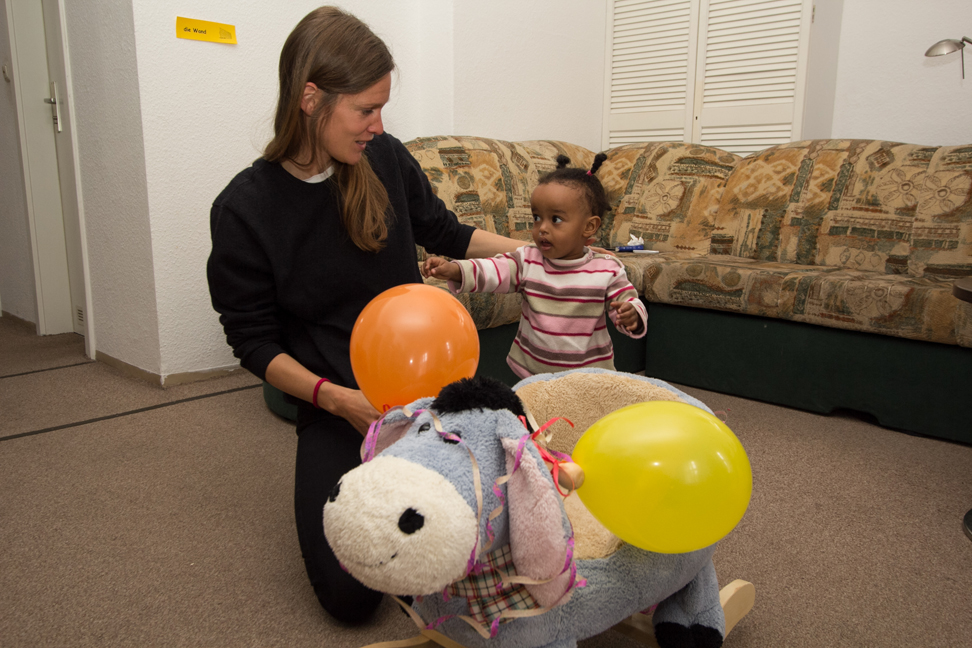 Am 18. Juni 2015 erwartete das Team der Einrichtung für Flüchtlingsfrauen in der Hegelallee einen freudigen Besuch von der Kita Friedenshaus. Anlass des Nachbarschaftsbesuchs war ein durch den veranstaltenden Förderverein organisierter Spendenlauf der Kita-Kinder. Für jede Runde der kleinen Läuferinnen und Läufer klingelte es im Geldbeutel. Ein Teil des Erlöses ging zugunsten der Kinder und Frauen in der Hegelallee. Frau Kranhold, Vorsitzende des Fördervereins, überreichte eine großzügige Spende von 300 Euro, ihre Kollegin schenkte der Einrichtung ein mit Luftballons geschmücktes Schaukelpferd, das sogleich zum Einsatz kam.