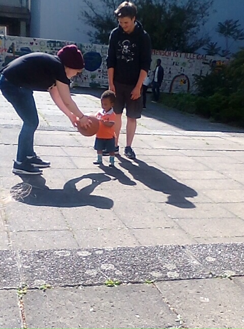 Nach und nach kamen auch noch andere Asylbewerber, hauptsächlich Männer dazu. Wir haben dann eigentlich immer Englisch miteinander geredet. Die Themen gingen von den Fluchtgründen über Lernen von Sprachen bis hin zu ihren Freizeitbeschäftigungen hier in Potsdam. Viele von ihnen machen gerne Sport, wie zum Beispiel Fußball spielen. Als wir mit dem Backen und anschließendem Essen fertig waren, haben wir dann auch gemeinsam mit den Asylbewerbern, die nur Französisch konnten, Fußball gespielt. Alle haben sich trotz der sprachlichen Unterschiede gut verstanden.