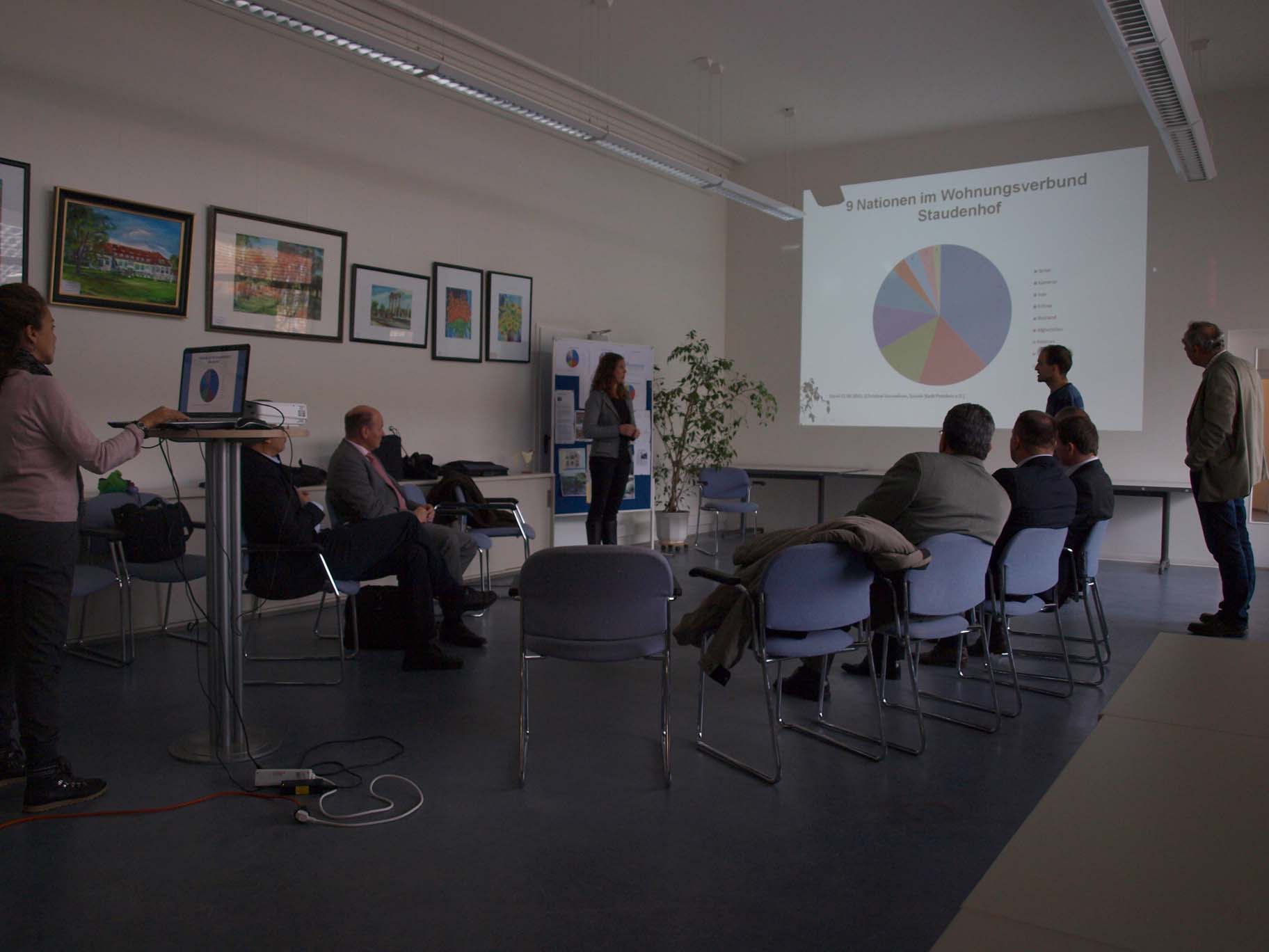 Der Besuch im Staudenhof fand im Rahmen einer Studienreise statt. Die Delegation aus Montenegro informierte sich über die Aufnahme und Unterbringungskonzepte für Flüchtlinge in Deutschland. Die Reise diente auch der besseren Vernetzung zwischen den Ländern Deutschland und Montenegro.