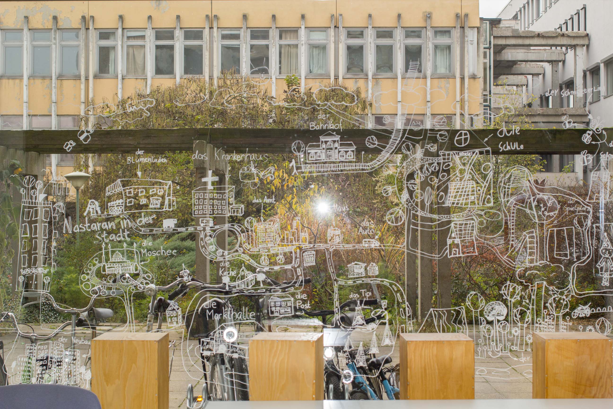 Patricia Vester und Lara Mohring von dem Projekt EINWORT "Das ultimative Videowörterbuch mit dem Spaßeffekt" veranstalteten von 9. November bis 14. Dezember 2016 mit "WORT HALTEN!" einen Kommunikationsworkshop im Wohnungsverbund Staudenhof. Filmclips, nicht länger als drei Minuten, die ein deutsches Wort erklären, wurden gedreht. Miteinander ins Gespräch kommen, etwas beschreiben oder Fragen stellen mit den Mitteln, die zur Verfügung stehen, darum ging es in dem Workshop. Zudem wurden Geschichten erzählt und gemalt, eingescannt, auf DIN-A3 Bögen gedruckt und durch eine raffinierte Falttechnik entstanden Mini-Geschichten-Büchlein. Präsentiert werden die Ergebnisse am