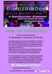 Am Nikolaustag ist es Zeit, den Staudenhof wieder in eine heiße Salsa-Bachata-Tanz-Location zu verwandeln. Unser DJ Reza sorgt für die richtige Mischung, das Team des Quartierstreffs Staudenhof für einen angenehme Stimmung. Falls jemand noch keine Ahnung von Bachata oder Salsa /Rueda de Casino hat, Reza, Christian & Robert werden es Euch gleich am Anfang erklären. Die Veranstaltung wird rein ehrenamtlich organisiert und durchgeführt, weshalb wir einfache Getränke auf Spendenbasis zur Verfügung stellen.